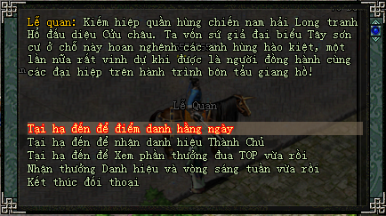 Mỗi ngày quý nhân sỹ chỉ có thể điểm danh 1 lần duy nhất, điểm danh thành công sẽ có thông báo trên kênh chát và vật phẩm tự động thêm vào hành trang người chơi